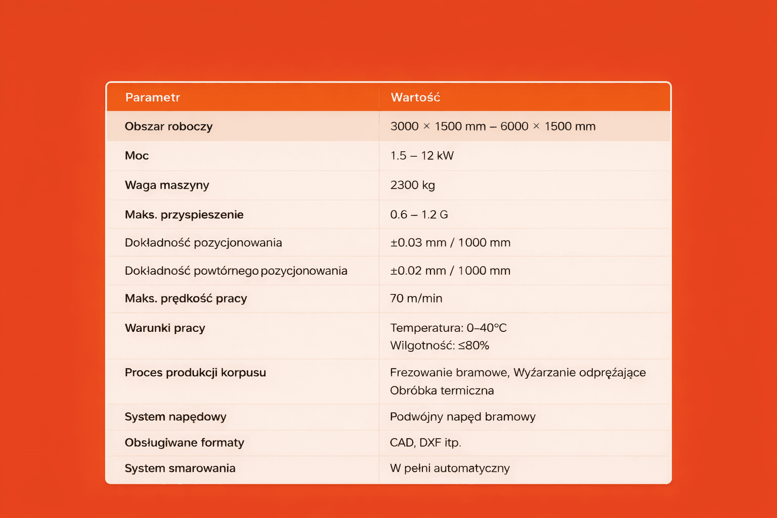 Kompatybilny ze źródłami laserowymi Raycus/Max/Reci/IPG o mocy 1,5 kW-12 kW, do cięcia stali nierdzewnej, stali węglowej, płyt stopowych i innych metali o wymiarach do 3000 x 1500 mm.